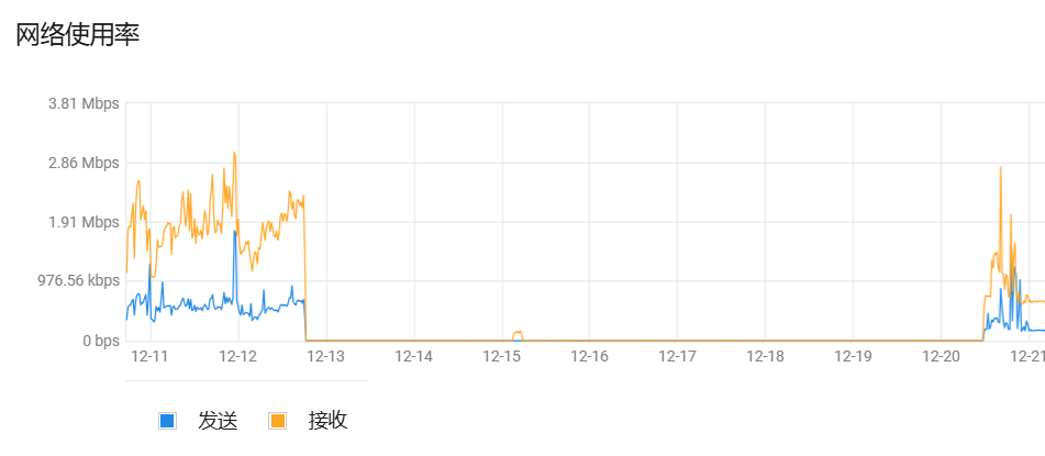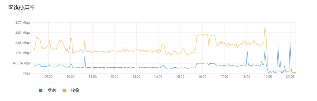 回到控制台重新看使用情况,整个机器宽带一直处于低占用,但时间一长且我这台机器上下行都要算进去就会累计很多流量消耗
